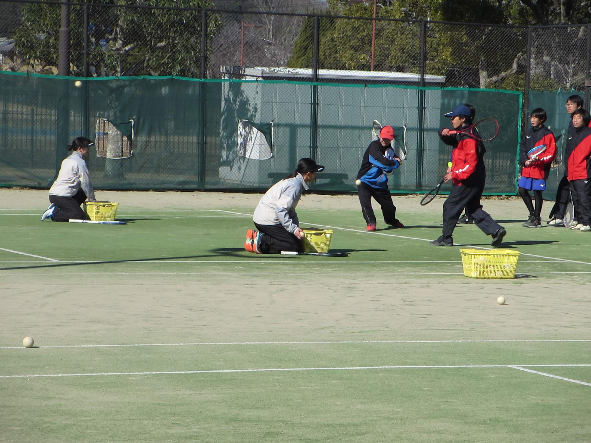 令和7年2月11日(火曜日)に太子町総合公園テニスコートにて東芝姫路ソフトテニス教室を開催しました。東芝姫路ソフトテニス部の監督と選手8名をお招きし、太子西中学校・太子東中学校のソフトテニス部員にソフトテニスの実技指導をしていただきました。