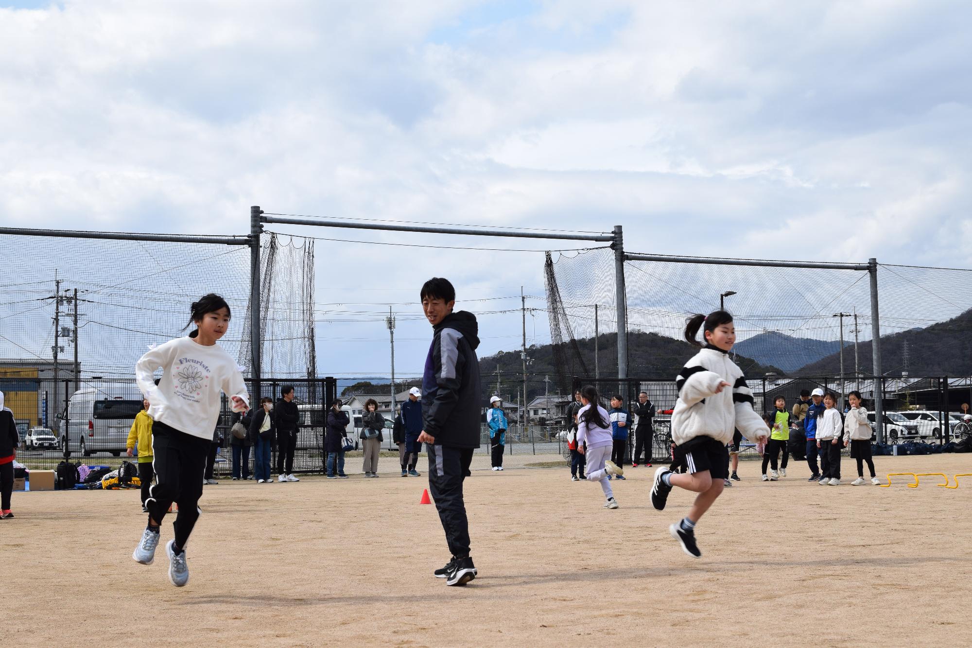 令和8年3月7日(土曜日)に丸尾建築総合公園町民グラウンドにて太子町ランニング教室を開催しました。太子町内の小学1年生から中学3年生を対象に参加者を募集し、75名が参加しました。